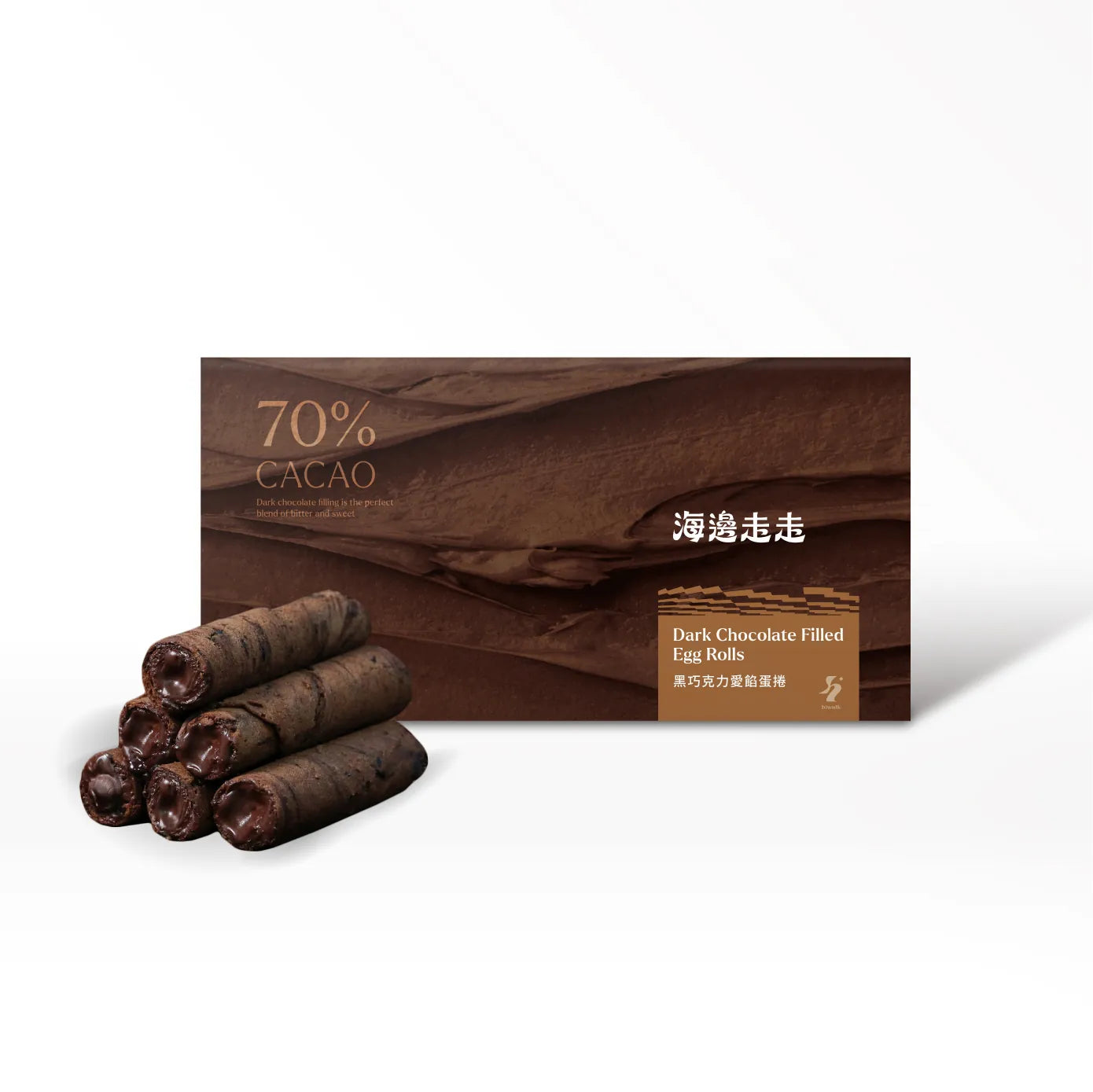 Hi-Walks Dark Chocolate Filled Egg Rolls feature a carefully selected 70% chocolate, filling the egg rolls with a luxurious double chocolate center.
