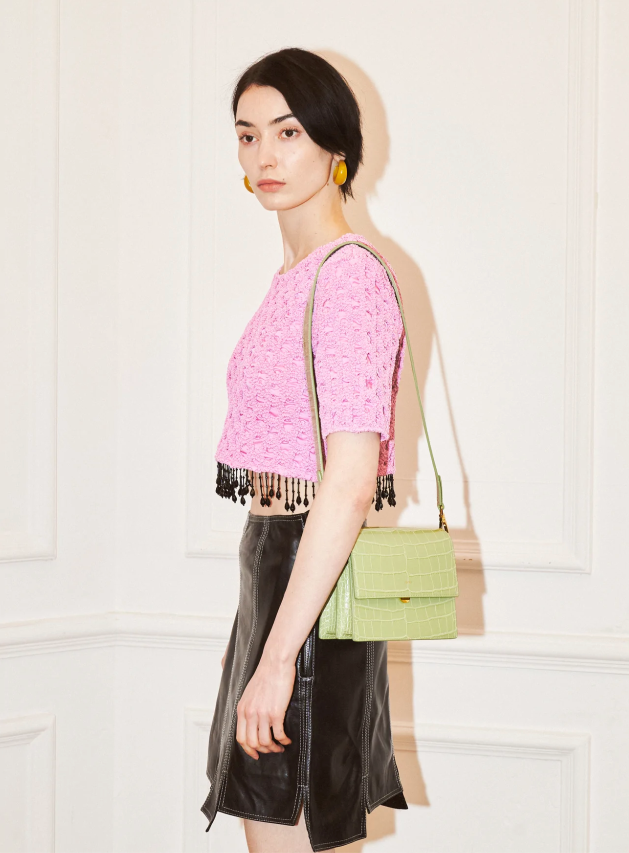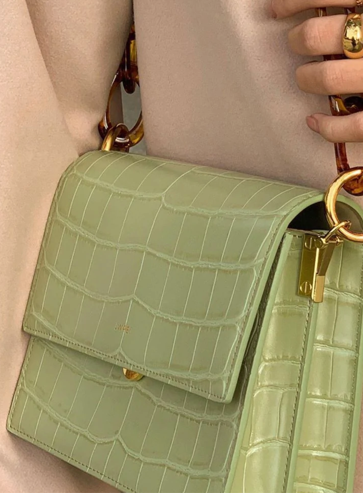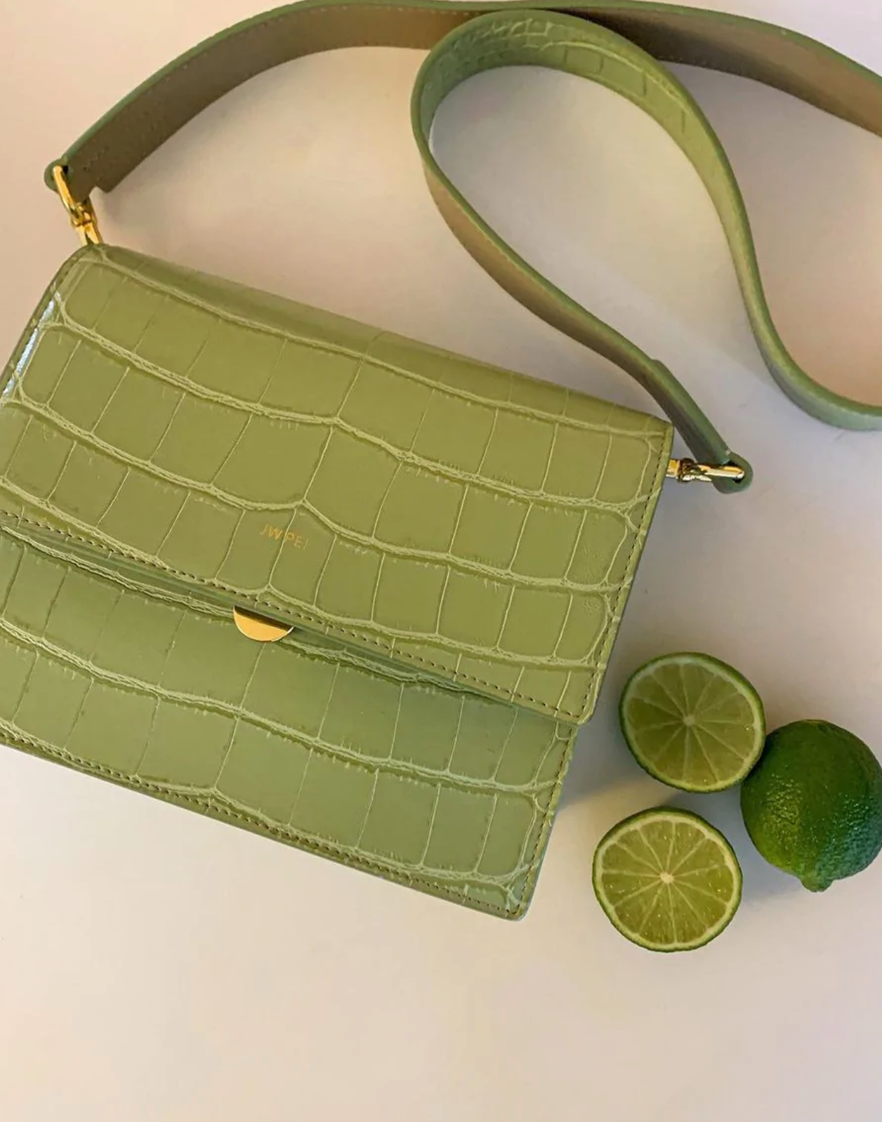 JW Pei Mini Flap Bag - Lime Green Croc