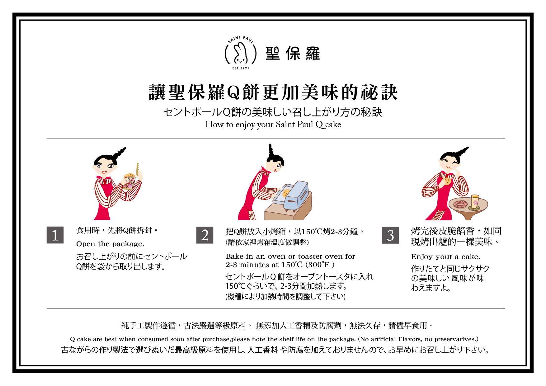 Introducing Saint Paul Q-Cakes: Each handmade pastry boasts a multi-layered texture that is crispy, not greasy. Savor the soft, elastic mochi and enjoy the delicate aftertaste of first-class red bean paste.
