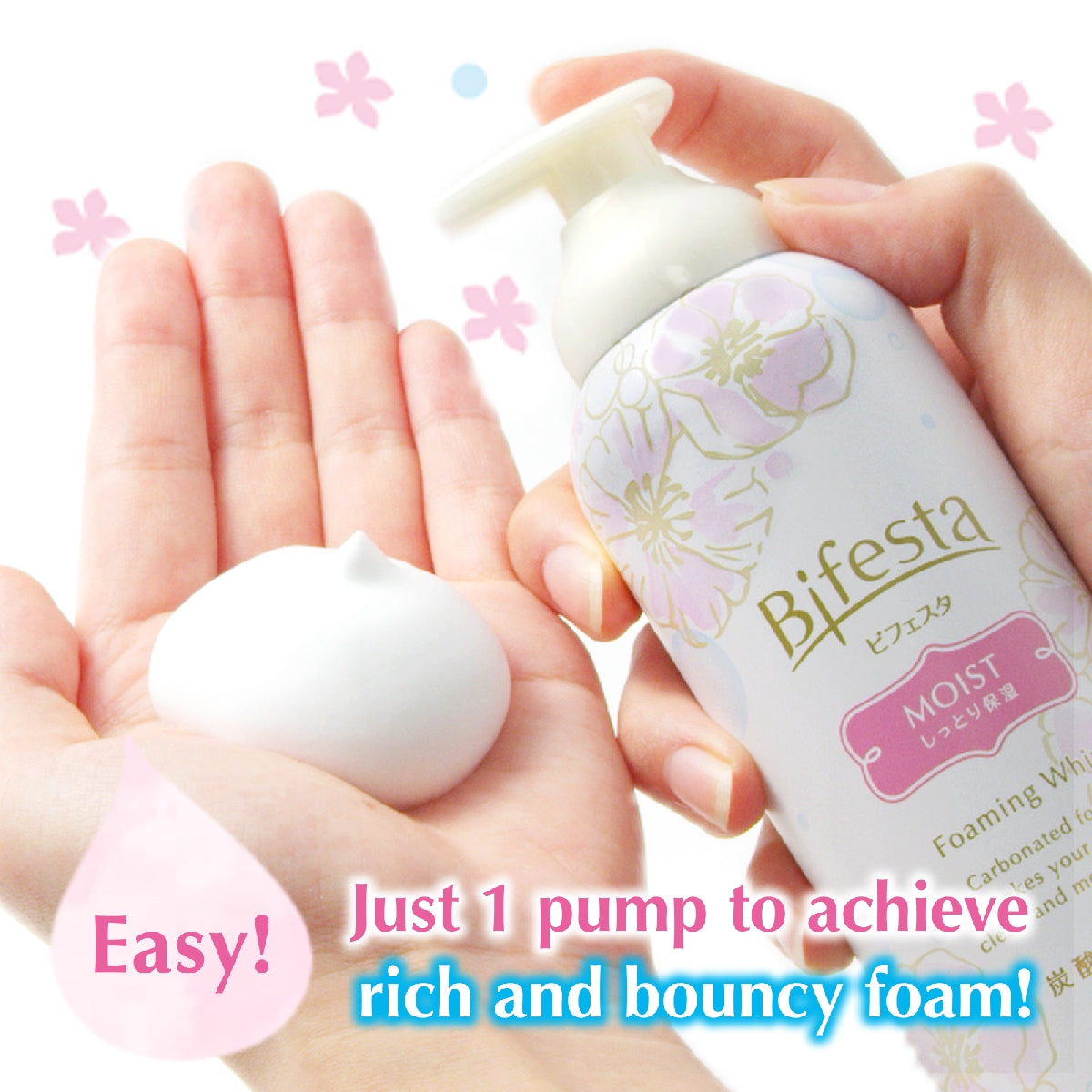 - Just 1 pump to achieve rich, gentle and bouncy foam