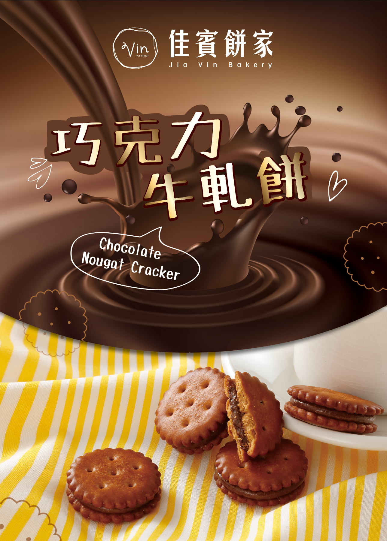 Jia Vin Bakery Nougat Crackers – Chocolate (2 boxes x 20 pcs)