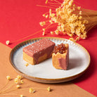 Indulge in Sunny Hills Japanese Kougyoku Apple Cakes glazed with Varlhona's strawberry couverture, topped off with a tinge of lemon icing.